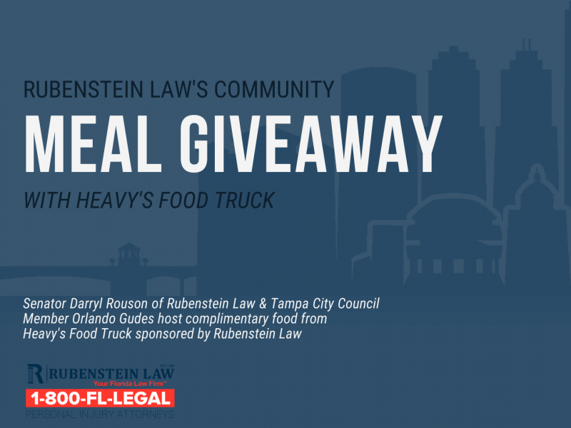 Senator Darryl Rouson of Rubenstein Law will be joined by Tampa City Council Member, Orlando Gudes, to serve lunch by Heavy's Food Truck in Tampa, at the Cyrus Greene Community Center (2101 E Dr Martin Luther King Jr...